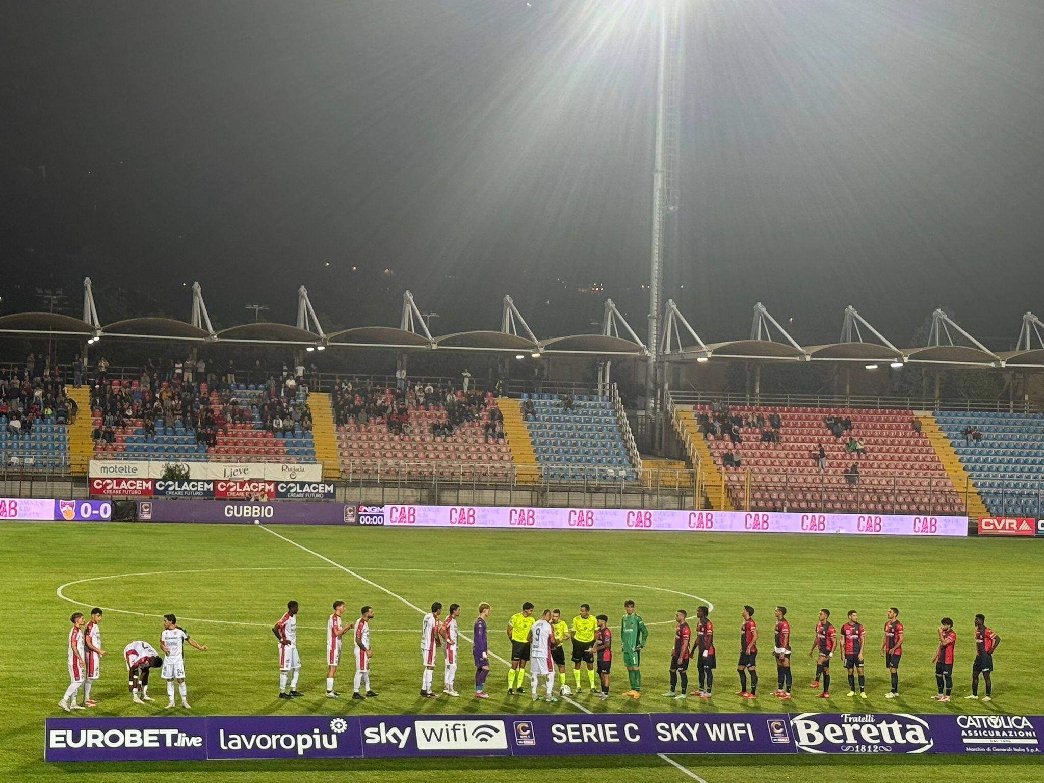 La Sambenedettese torna da Gubbio con un punto e si conferma bestia nera degli egubini, che contro i rivieraschi non hanno mai conquistato la vittoria.Il Gubbio schiera il 3-4-2-1 con Bagnolini tra i pali, Fazzi, Bruscagin e Di Bitonto in difesa, Zallu, Carraro, Djankpata e Podda a centrocampo, Minta e Spina e Tommasini in attacco.Palladini opta per il 4-2-3-1 con Orsini tra i pali, Zini, Pezzola, Dalmazzi e Tosi in difesa, Alfieri e Toure a centrocampo, Konate, Scafetta e Marranzino dietro Eusepi.Cronaca. La Samb crea subito e già al 2’ Marranzino dalla sinistra crossa in mezzo, ma Scafetta manda sul fondo. Al 6’ una punizione di Alfieri dalla destra colpisce il palo. Al 8’ una conclusione dalla destra di Carraro viene respinta sulla linea da Dalmazzi. Al 17’ Eusepi conclude da dentro l’area, bravo Bagnolini che respinge felinamente con i piedi. Al 18’ rete del Gubbio, che passa in vantaggio dopo un batti e ribatti in area: Orsini respinge un colpo di testa di Zallu, ma Tommasini dall’area piccola centra il tap-in vincente. Al 26’ Tommasini servito da Zallu si vede dire no, e al 38’ è ancora Orsini che non si fa beffare da Carraro. Al 40’ ci prova Scafetta, ma la palla termina sul fondo. Il pareggio della Samb arriva al 44’: Eusepi crossa dall’area di rigore e in mezzo trova Tourè che di testa sigla la rete del pareggio. Al 53’ Tommasini conclude in porta, ma Orsini devia in corner. Al 65’ ancora l’estremo difensore ospite dice no sulla linea ad un’incornata di Di Bitonto. Al 73’ Zini dal limite destro conclude in porta, bravo Bagnolini a respingere, Napolitano tenta il tap-in, ma il portiere blocca. Sul finale la Samb chiede il Fvs per una spinta in area da rigore, ma per l’arbitro è tutto regolare e la gara termina in parità.