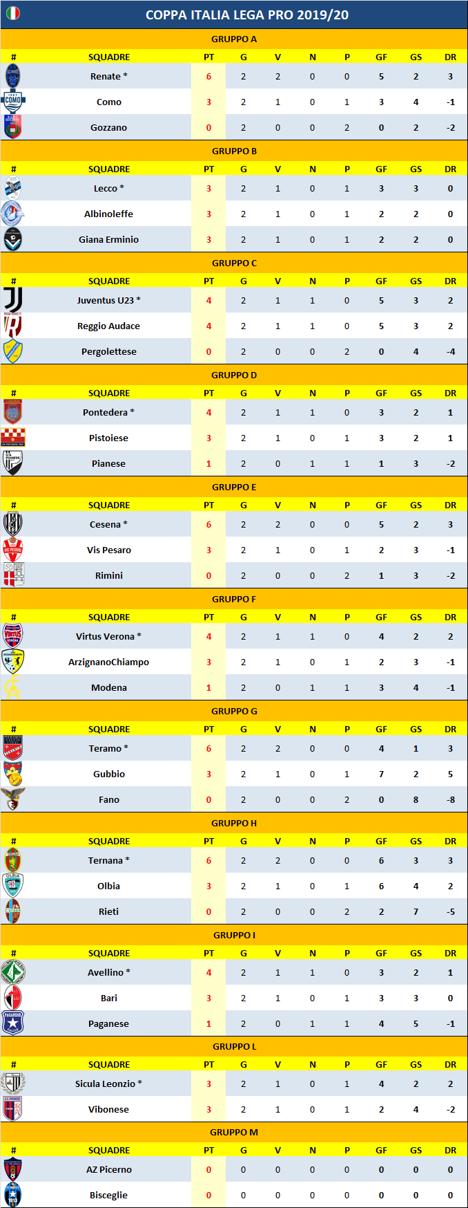 Quasi ultimato il quadro della Fase a Gironi della Coppa Italia Lega Pro; manca all'appello solo il doppio confronto fra AZ Picerno-Bisceglie.