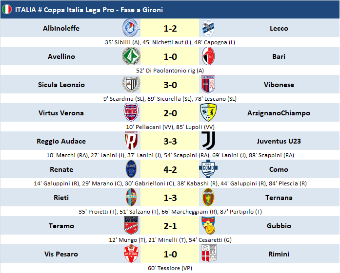 Gran spettacolo a Renate, dove i "nero-azzurri" battono il Como e si qualifica; colpaccio esterno del Lecco che vince in casa dell'Albinoleffe e stacca il pass. Emozioni anche sul neutro di Alessandria, dove il Reggio Audace impatta con la Juventus U23 e viene beffato, in quanto a parità di punti, passano i torinesi per aver segnato più reti fuori casa.