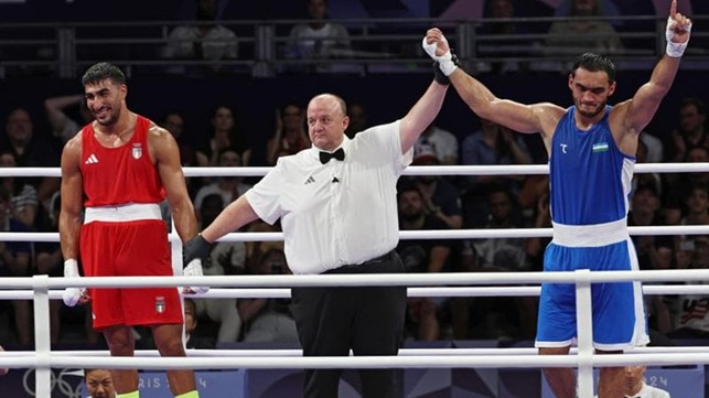 L’unico finito alla pari era stato Jahmal Harvey (Usa), 21 anni, oro mondiale 2021 a Belgrado a 19 anni, ma tre giudici lo indicano vincitore sul pugile di Oxon nel Maryland, che il prossimo anno passerà pro. Terzo oro uzbeko ad Asadkhuja Muydinkhujaev nei 71, 23 anni, attivo dal 2018, promosso ai Giochi nella preolimpica di Busto, dopo aver fallito ai Panasiatici, fermato dal kazako Hhymbergenov, che a Parigi è uscito all’esordio. L’uzbeko ha faticato parecchio in semifinale contro Jones (Usa), sconfitto con un 3-2 molto dubbio. Nella finale ritrova Marco Verde, che lo scorso febbraio a La Nucia in Spagna lo aveva superato. A Parigi si è preso la rivincita che valeva l’oro. Ad onor del vero, il messicano ha pagato la fatica per battere l’inglese Richardson in semifinale, con il solito 3-2 digerito a fatica dal britannico che a sua volta era andato avanti con due vittorie (3-2) sul serbo-russo Abbasov, europeo 2022 e il tosto jordano Eashash. La categoria ha raccolto il record dei verdetti di misura, ben otto decisi per 3-2. Gli altri due successi (92 e +92) li tratto a parte con gli italiani interessati.