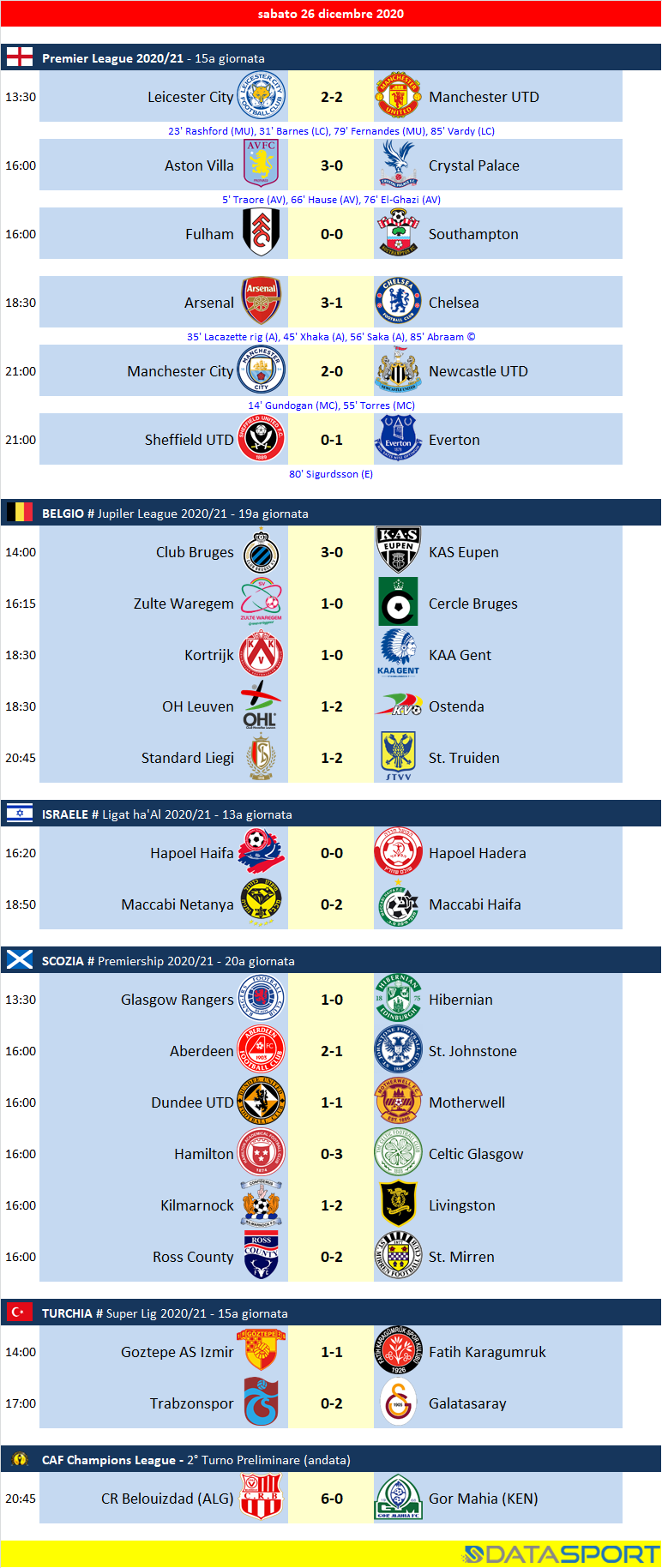 Segui le dirette di tutte le partite odierne, sabato 26 Dicembre 2020