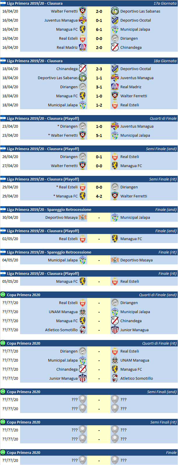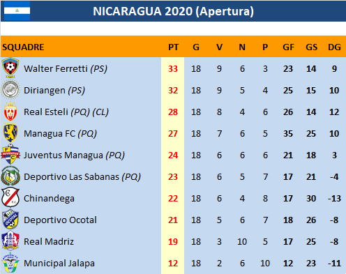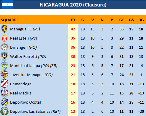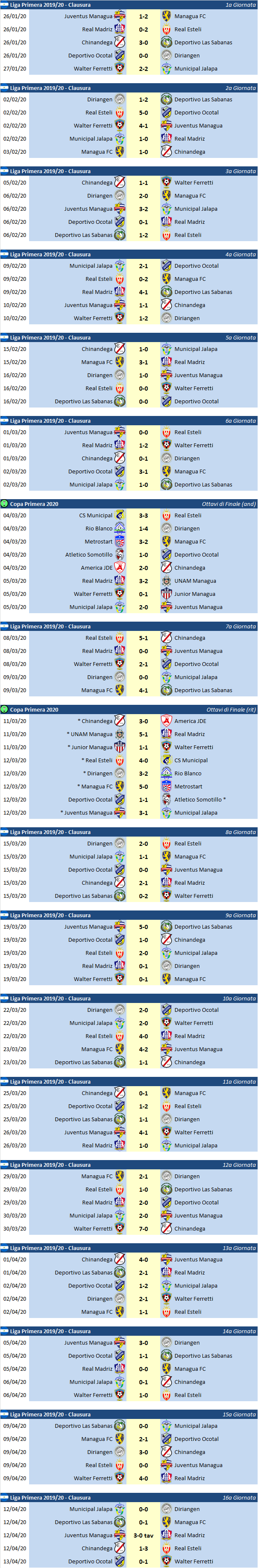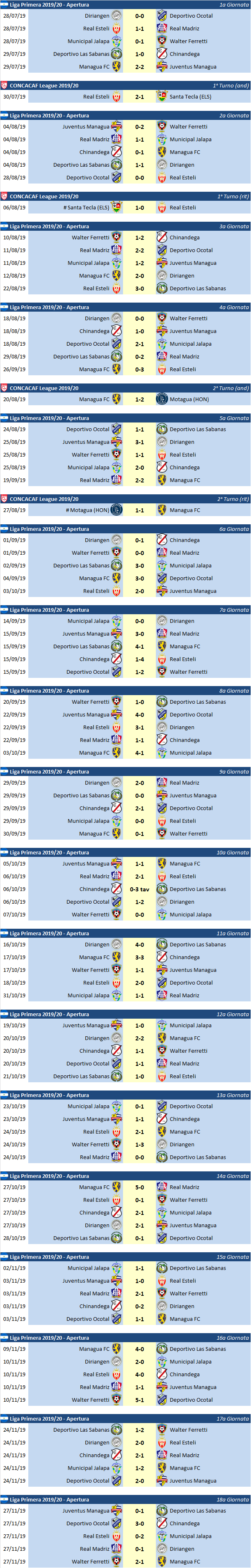 Nicaragua - Stagione 2019/20
