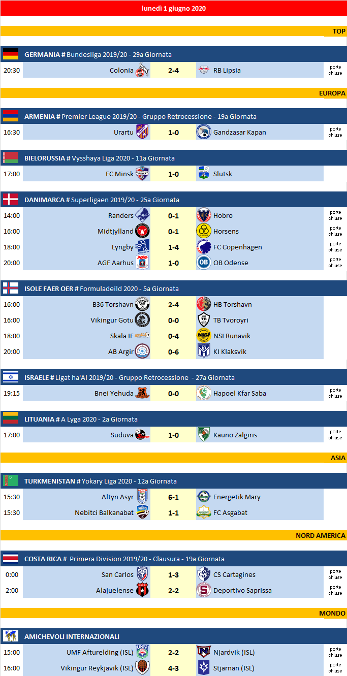 Classifiche: TOP - EUROPA - SUD AMERICA - ASIA - AFRICA - NORD AMERICA - OCEANIA