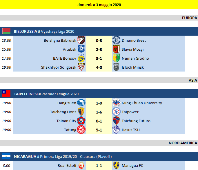 Classifiche: EUROPA - SUD AMERICA - ASIA - AFRICA - NORD AMERICA - OCEANIA