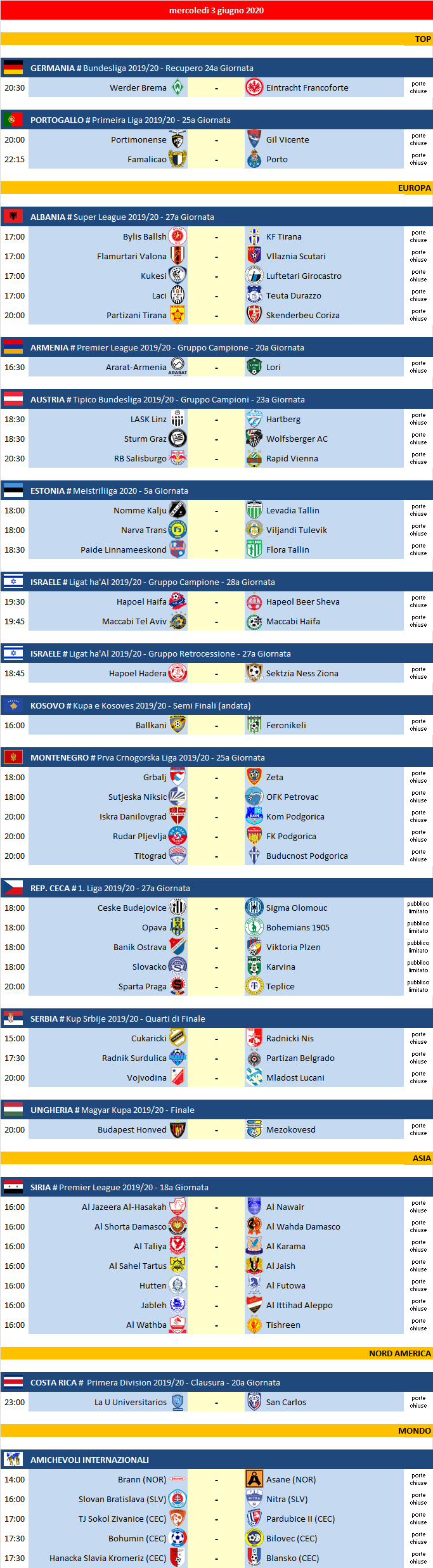 Classifiche: TOP - EUROPA - SUD AMERICA - ASIA - AFRICA - NORD AMERICA - OCEANIA