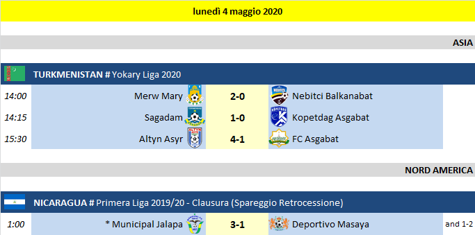 Classifiche: EUROPA - SUD AMERICA - ASIA - AFRICA - NORD AMERICA - OCEANIA