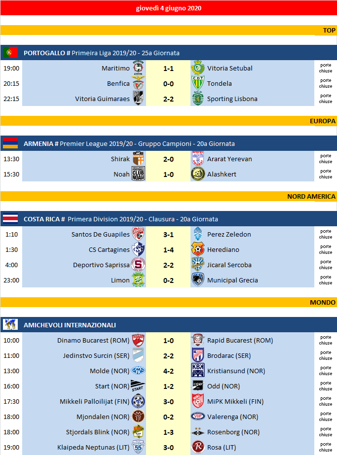 Classifiche: TOP - EUROPA - SUD AMERICA - ASIA - AFRICA - NORD AMERICA - OCEANIA