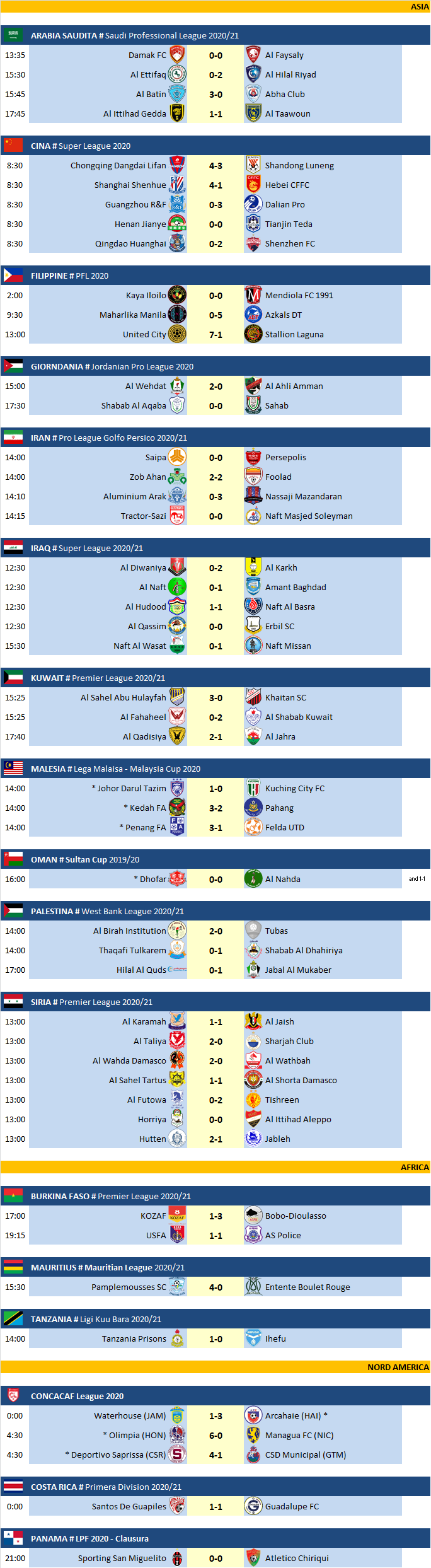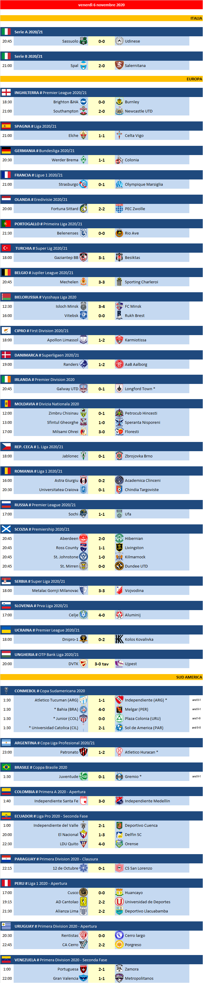 Risultati e classifiche: Serie A - Serie B - Campionati "Top" - Campionati Esteri