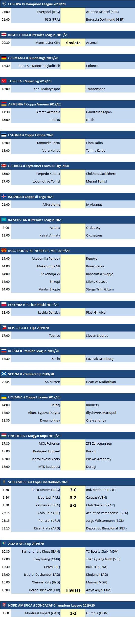 Partite del 11/03/2020