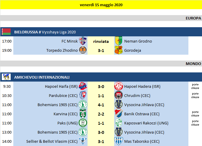 Partite di venerdì 15 Maggio 2020
