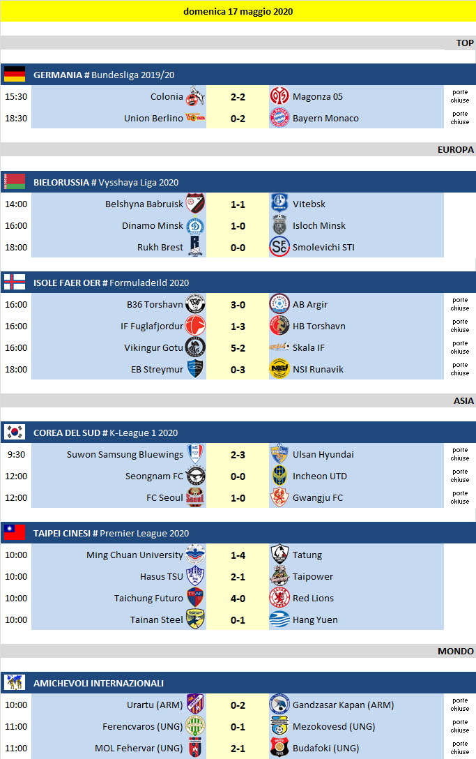 Classifiche: TOP - EUROPA - SUD AMERICA - ASIA - AFRICA - NORD AMERICA - OCEANIA