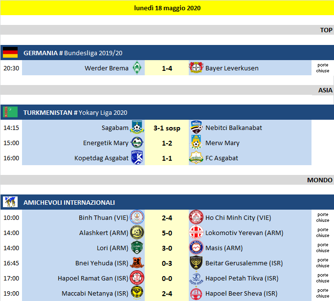 Classifiche: TOP - EUROPA - SUD AMERICA - ASIA - AFRICA - NORD AMERICA - OCEANIA