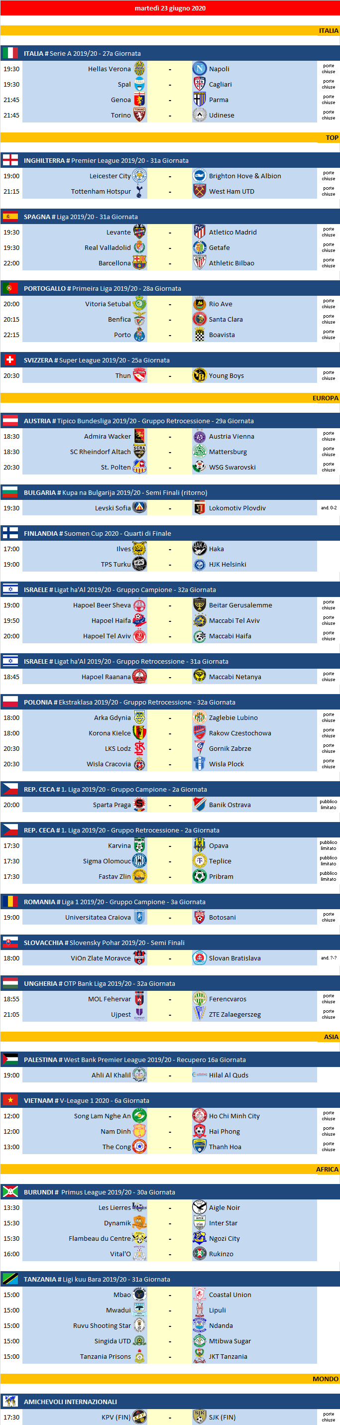 Classifiche: TOP - EUROPA - SUD AMERICA - ASIA - AFRICA - NORD AMERICA - OCEANIA