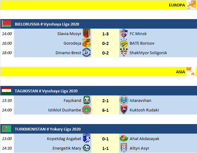 Partite di sabato 25 Aprile 2020