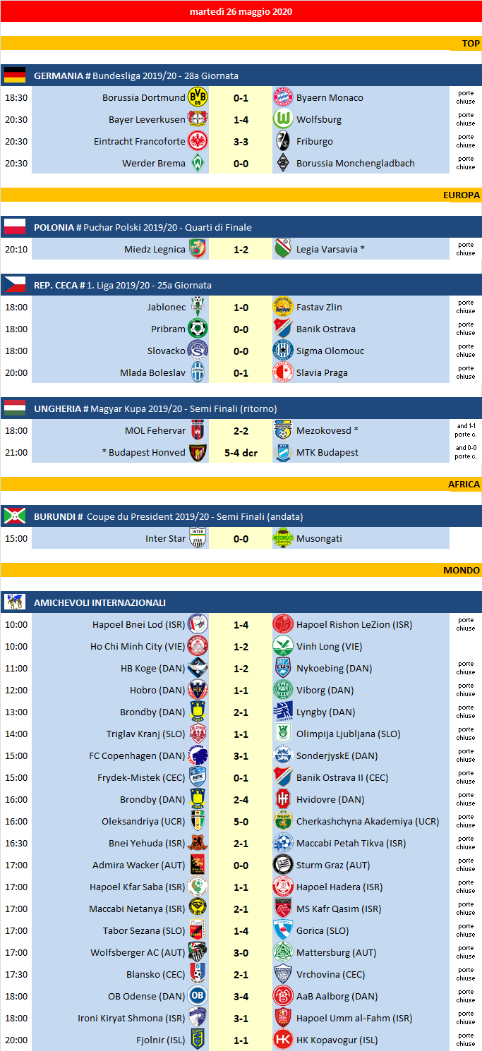 Classifiche: TOP - EUROPA - SUD AMERICA - ASIA - AFRICA - NORD AMERICA - OCEANIA