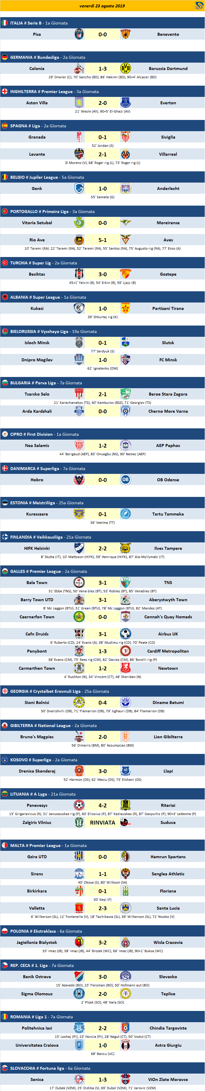Risultati - Partite del 23/08/2019