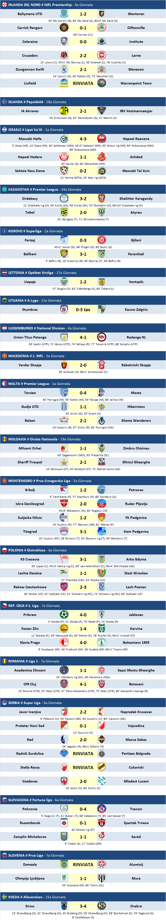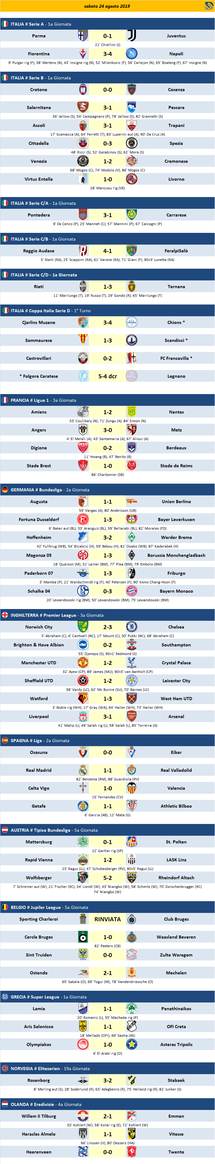 Risultati - Partite del 24/08/2019