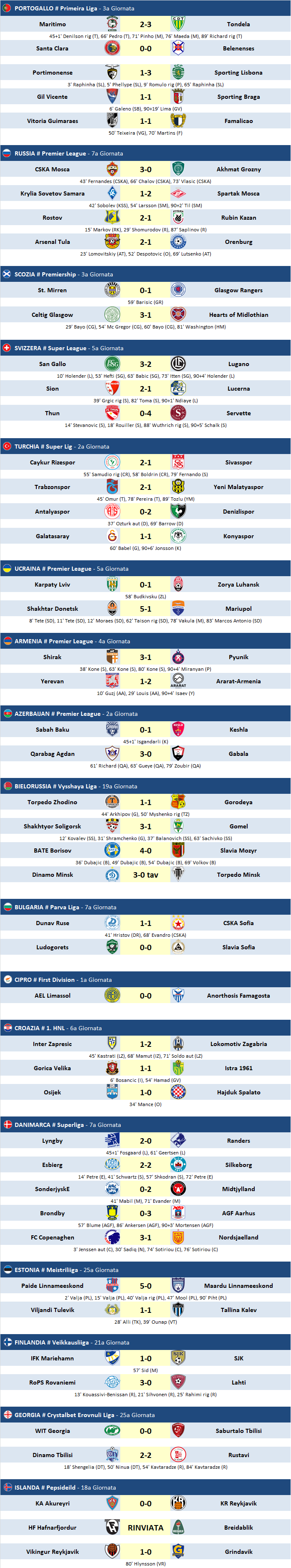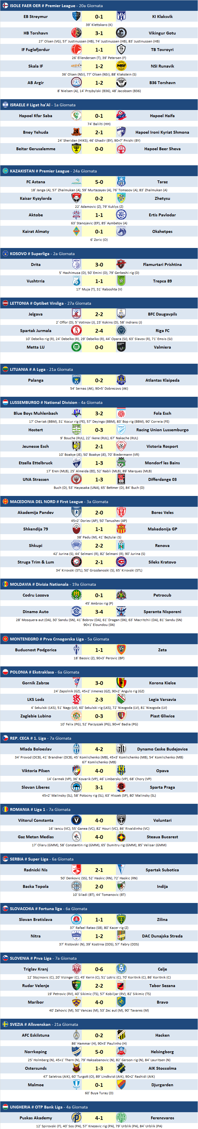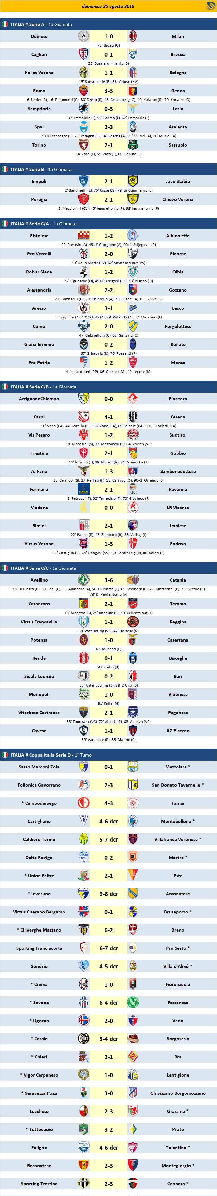 Risultati - Partite del 25/08/2019