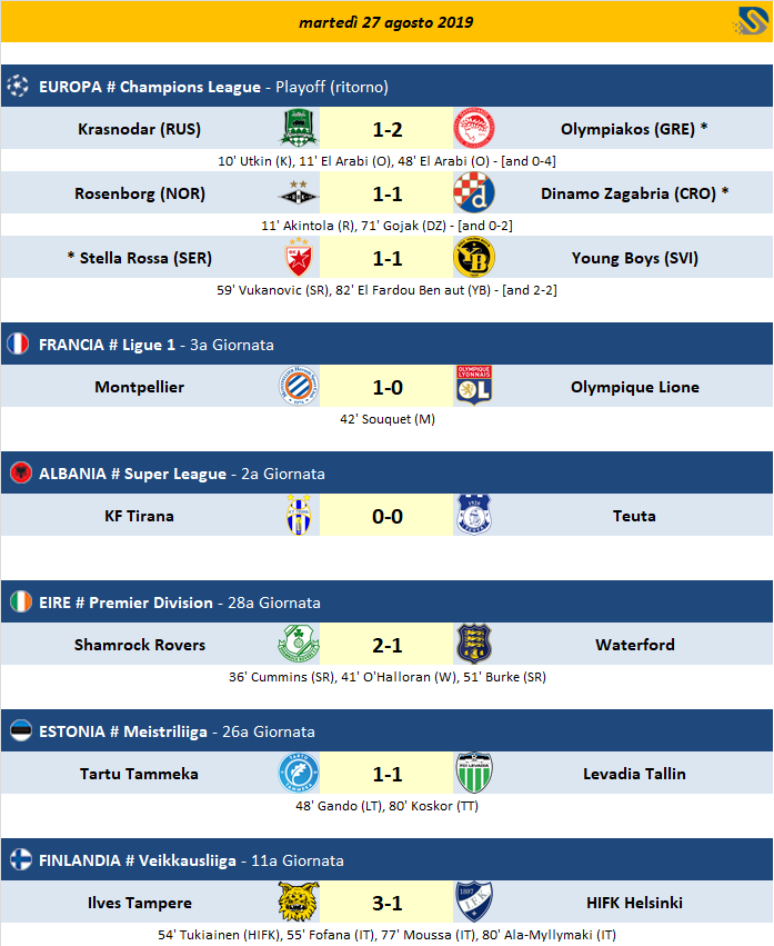 Risultati - Partite del 27/08/19