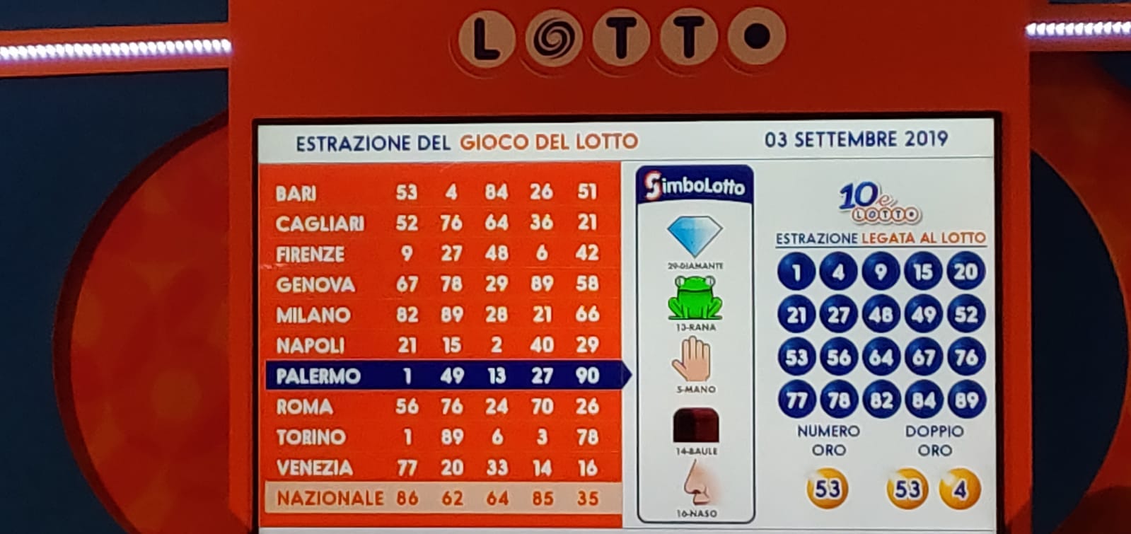 ESTRAZIONE SIMBOLOTTO DI 3 SETTEMRBE 2019