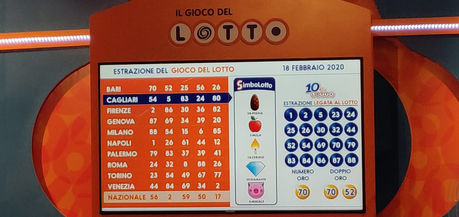 SIMBOLOTTO SCHEDINA 18 FEBBRAIO 2020